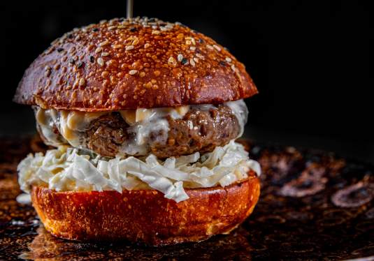 Один отличный выбор вы уже совершили, заказав у нас столик, а выбрать сытный бургер с нежной говяжьей котлетой, копченым сыром на свежеиспеченной булочке а-ля бриошь, пряным луковым конфитюром и слайсами маринованного огурца, еще один отличный выбор.