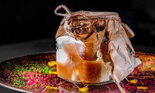 Морковный бисквит с сметанно-сырным кремом и соленой карамелью.