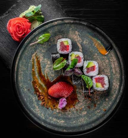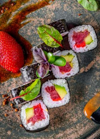 Состав: Тунец, авокадо, имбирь, соус унаги, нори, суши-рис