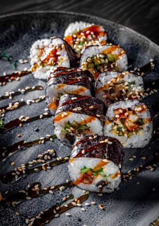 Состав: Угорь, огурец, соус унаги, кунжут, нори, суши- рис