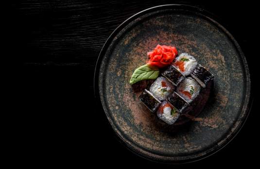 Состав: суши-рис, водоросли Нори, авокадо, лосось копченый, сыр сливочный