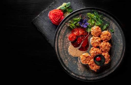 Лосось, сливочный сыр, салат айсберг, кунжут, тобико, соус спайси, нори, суши-рис (острые*).