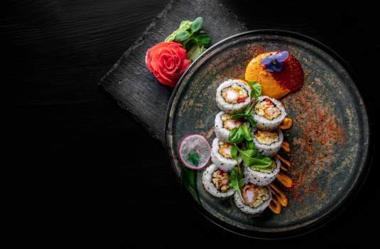 Креветка, яблоко, перец сладкий, соус спайси, нори, суши-рис (острые*)