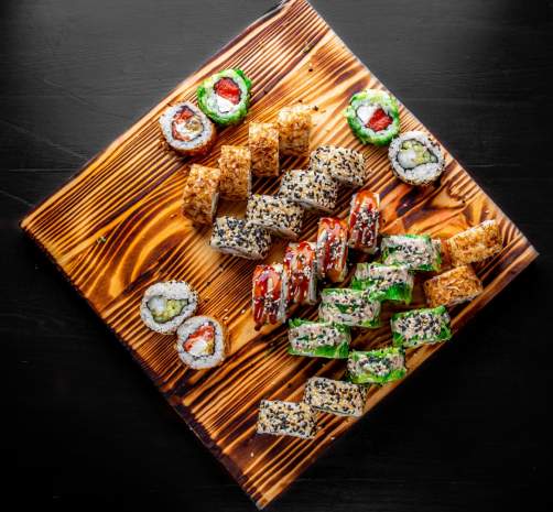Суши Сет С.А. Мурай 785гСостоит из: -Ролл с лососем в чуке-Бонито-Калифорния-Черный дракон ½