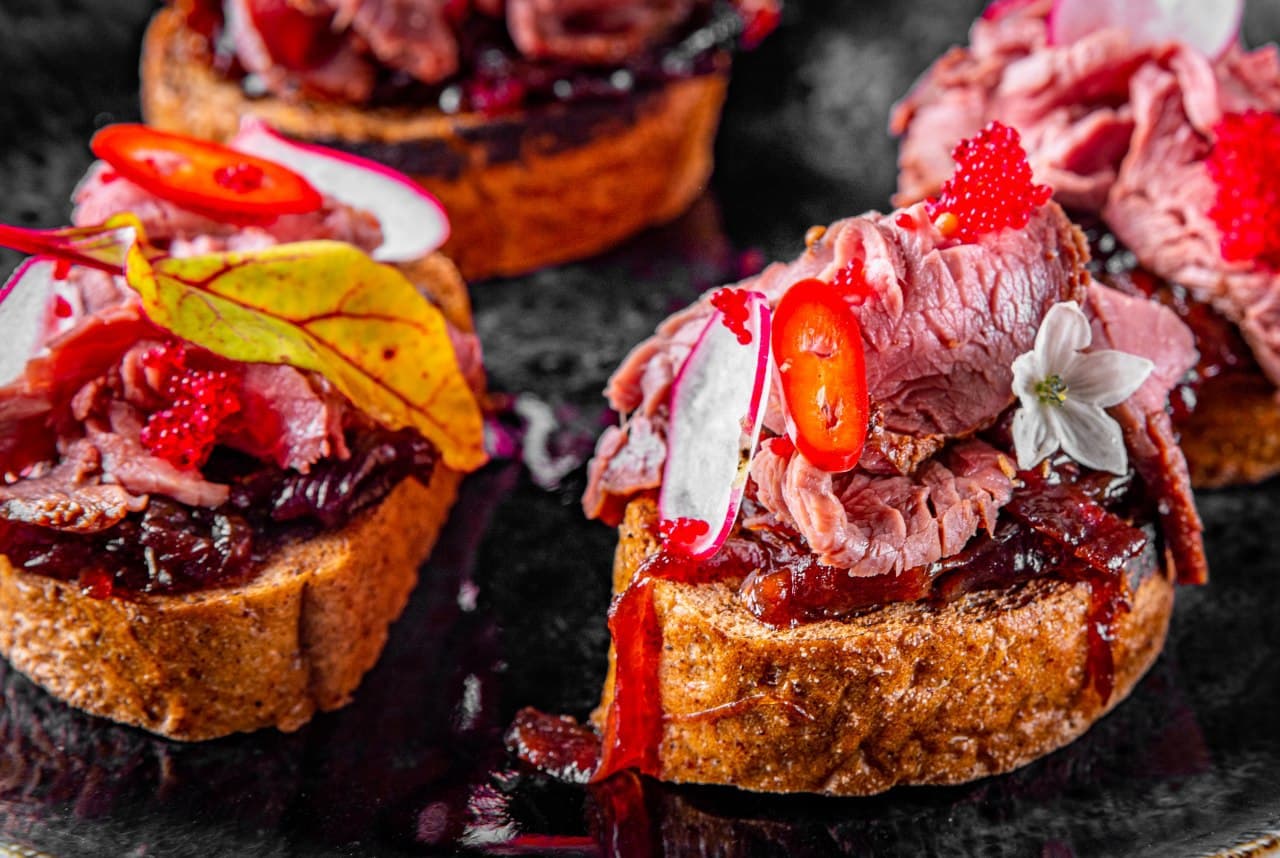 Брускетта с ростбифом и луковым конфитюром